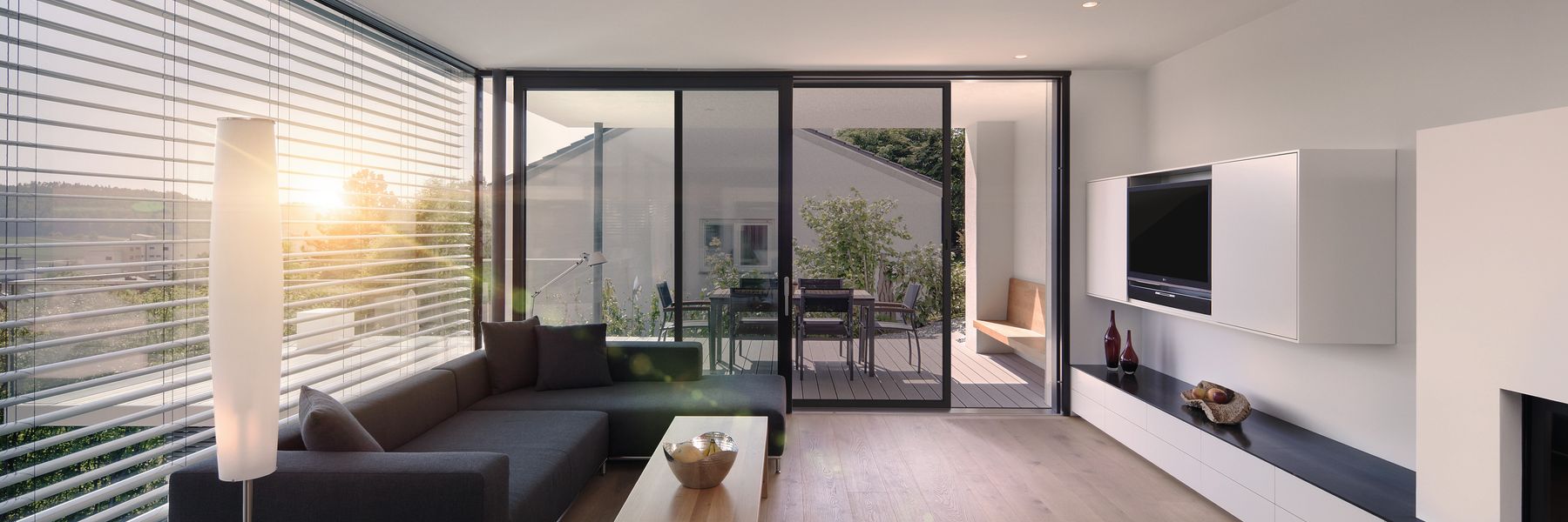 Genießen Sie Tageslicht und Privatsphäre gleichermaßen. Mit WAREMA Außenjalousien – Fachleute sagen auch Raffstore dazu – schaffen Sie in Ihrem Zuhause oder im Büro ein Ambiente, in dem Sie sich rundum wohlfühlen. Individuell einstellbare Lamellenwinkel ermöglichen Ihnen dabei sowohl die Steuerung des Sonnenlichteinfalls nach Ihren Wünschen, als auch Schutz vor unerwünschten Blicken. Finden Sie hier genau die Außenjalousie, die zu den individuellen architektonischen Anforderungen Ihrer Fassade passt. Auch Sonderformen sind für uns kein Problem.